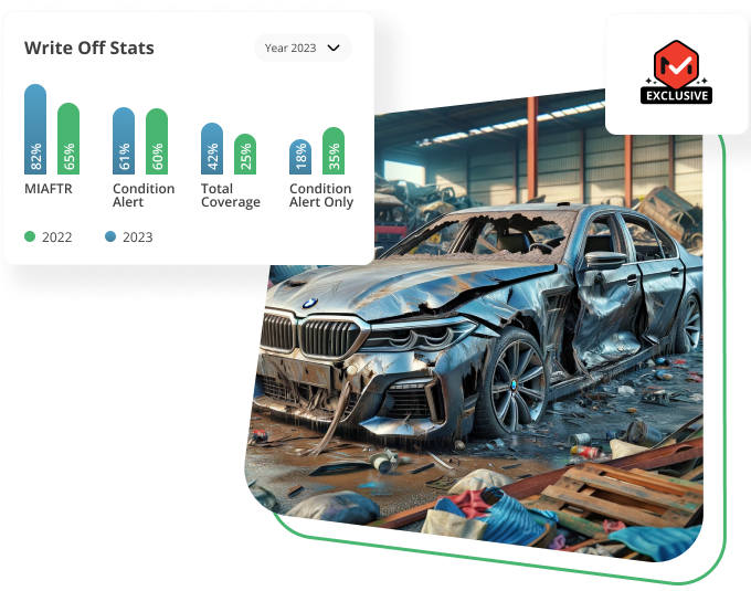 Vehicles with a salvage history can be a gamble. Secure your business and reputation with our thorough Ex-Salvage Check, ensuring you're informed and protected from undocumented insurance write-offs.